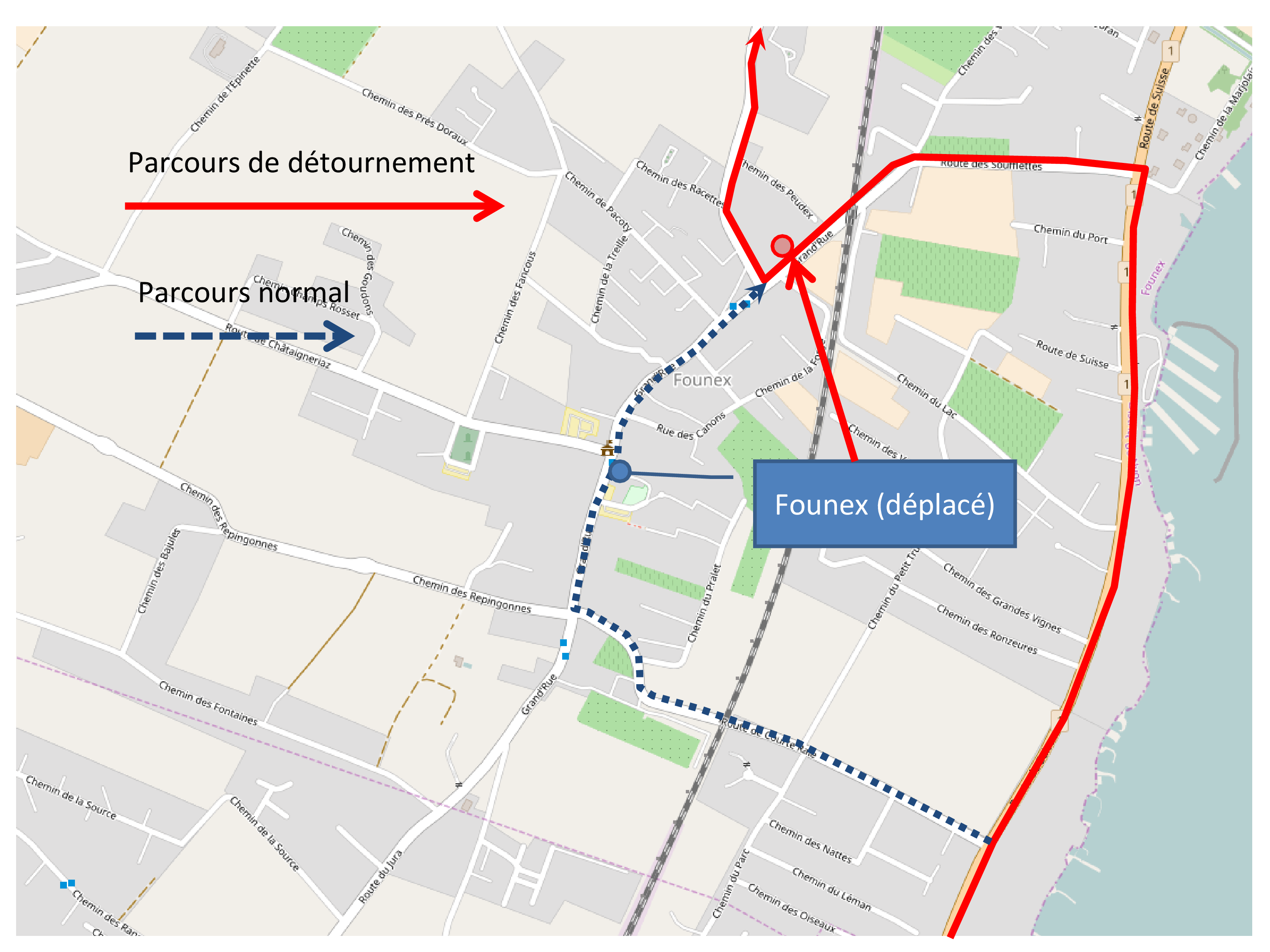 Dès le vendredi 07 Août 2020 au soir, la ligne ND est détournée sur la commune de Founex.
