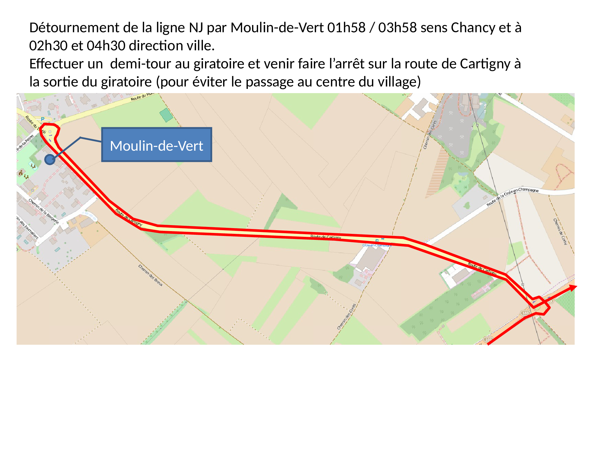 Arrêt Moulin-de-Vert déplacé et 4 passages supplémentaires direction ville à 02h30 et 04h30