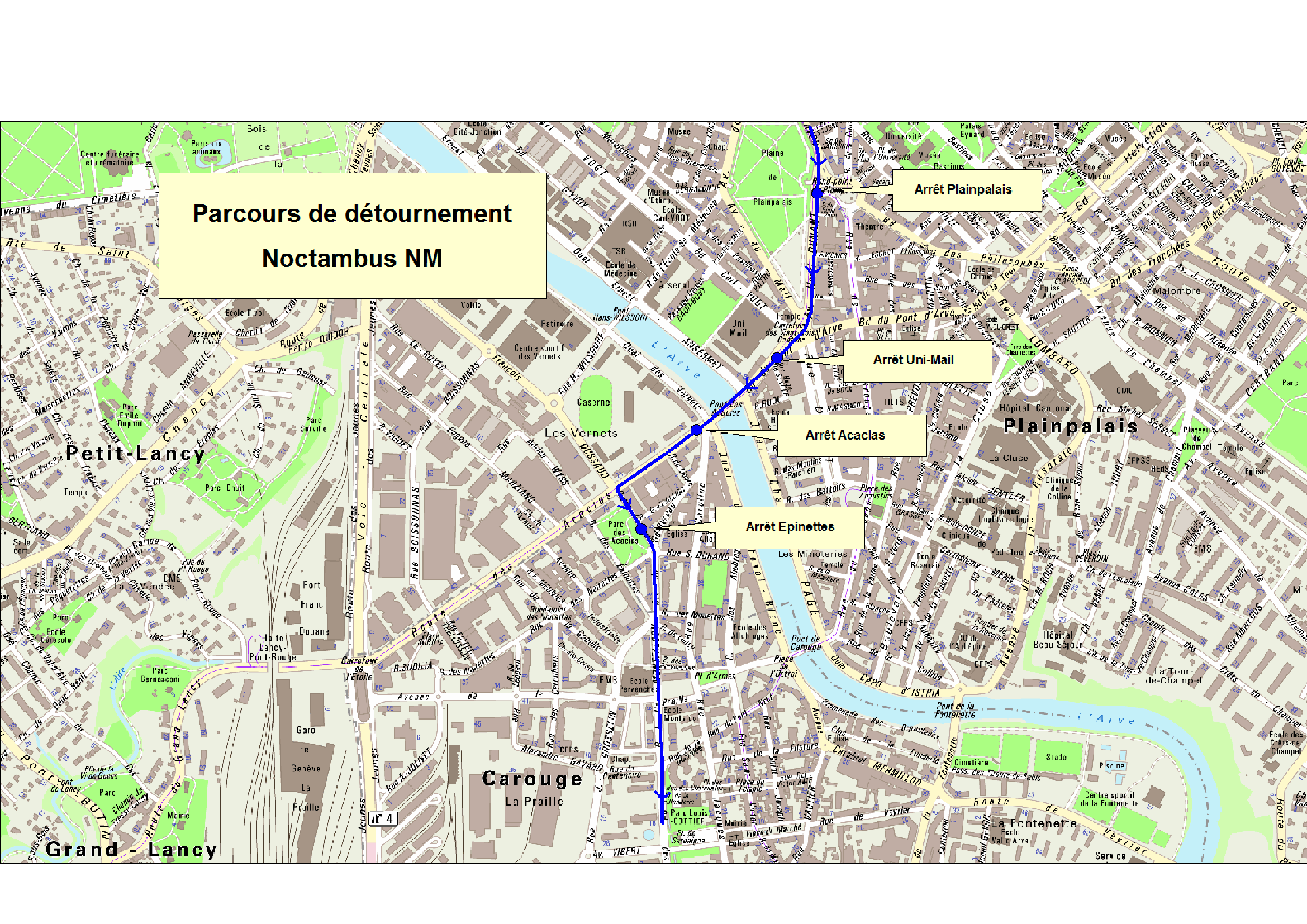 Fin des travaux ligne NM 01 janvier 2019 Dès le 21.12.2018 la ligne NM ne sera plus détournée entre le rond-point de Plainpalais et le boulevard du Pont d’Arve.