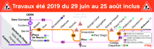 L’axe Chêne de la ligne 12 sera en travaux du 29 juin au 25 août inclus. Le trafic (tram + route) est complètement interrompu au niveau de la nouvelle gare des Eaux-Vives et du goulet de Chêne-Bougeries.