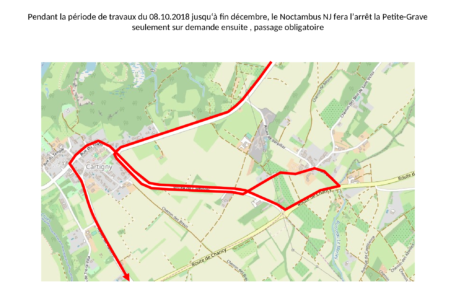 Lire la suitePendant la période de travaux du 08.10.2018 jusqu’à fin décembre, l’arrêt « la Petite-Grave » se fera uniquement sur demande suivant le plan ci-dessus.