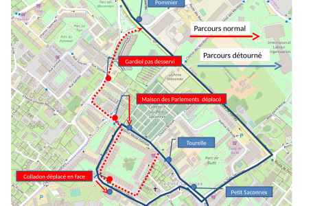 Lire la suiteEn raison de travaux au Chemin du Pommier, la ligne NE est détournée dès le vendredi 29.09.2017, pendant la durée des travaux.