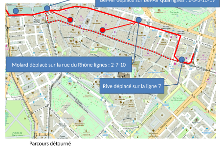En raison de travaux, les arrêts « Carouge-Marché » et « Ancienne » ne seront pas desservis dès le 20 / 05 / 2016 durant environ 3 semaines. Pour prendre votre bus, rendez-vous à l’arrêt « Armes » ou à l’arrêt « Carouge-Rondeau ». Nous vous remercions pour votre compréhension.